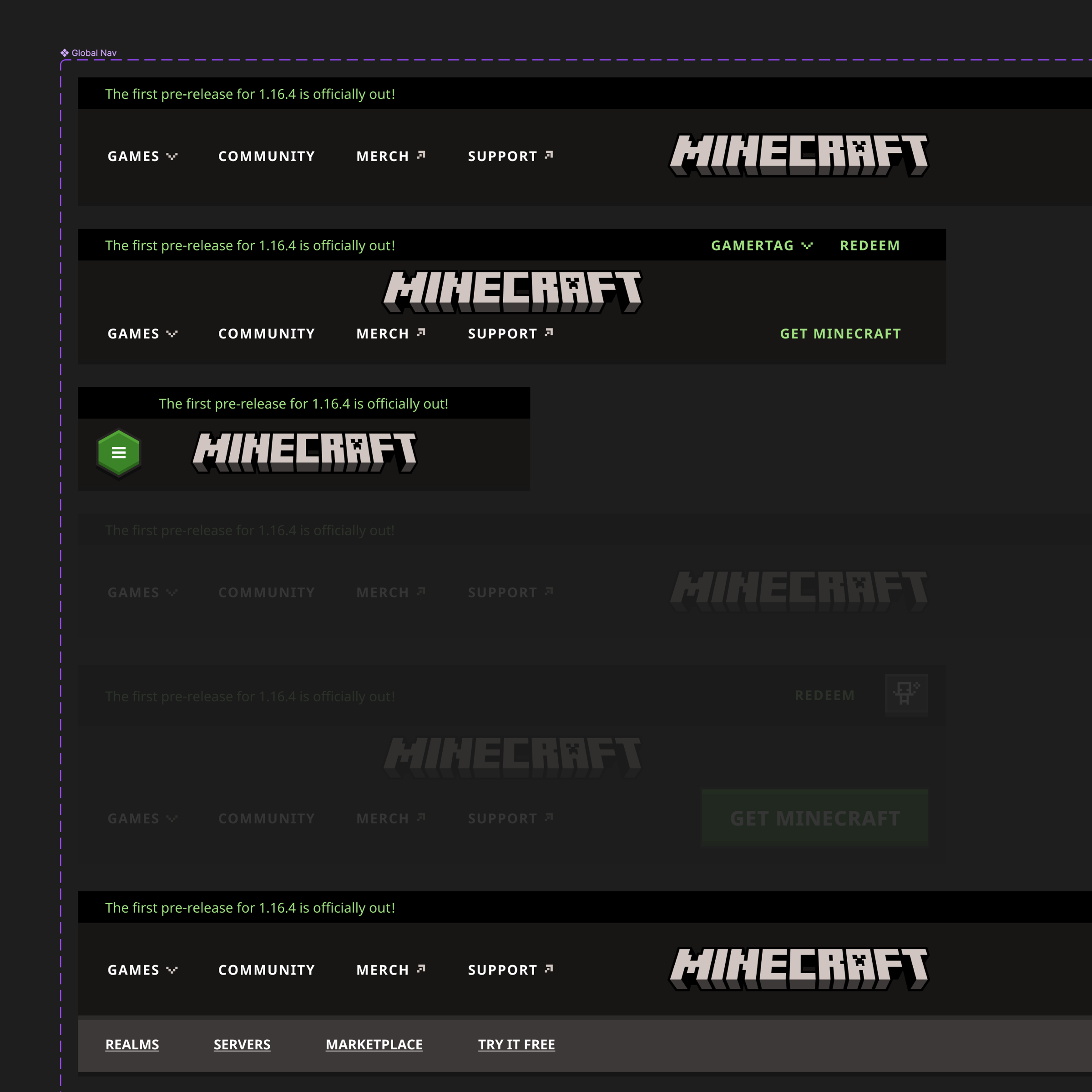 Embarking on the journey to create a comprehensive design system for Minecraft's website and its WebUI components has been an exhilarating endeavor. My efforts have been driven by a commitment to establishing a unified visual language that not only reflects the essence of Minecraft but also streamlines the development process and elevates the overall user experience. Through meticulous attention to detail, collaborative ideation, and a focus on scalability, the design system serves as a foundational framework, empowering the entire team to consistently deliver cohesive and aesthetically pleasing interfaces. Witnessing the successful implementation of the design system across various facets of the website has been immensely gratifying, as it not only enhances efficiency but also fosters a sense of coherence that resonates with Minecraft enthusiasts worldwide.