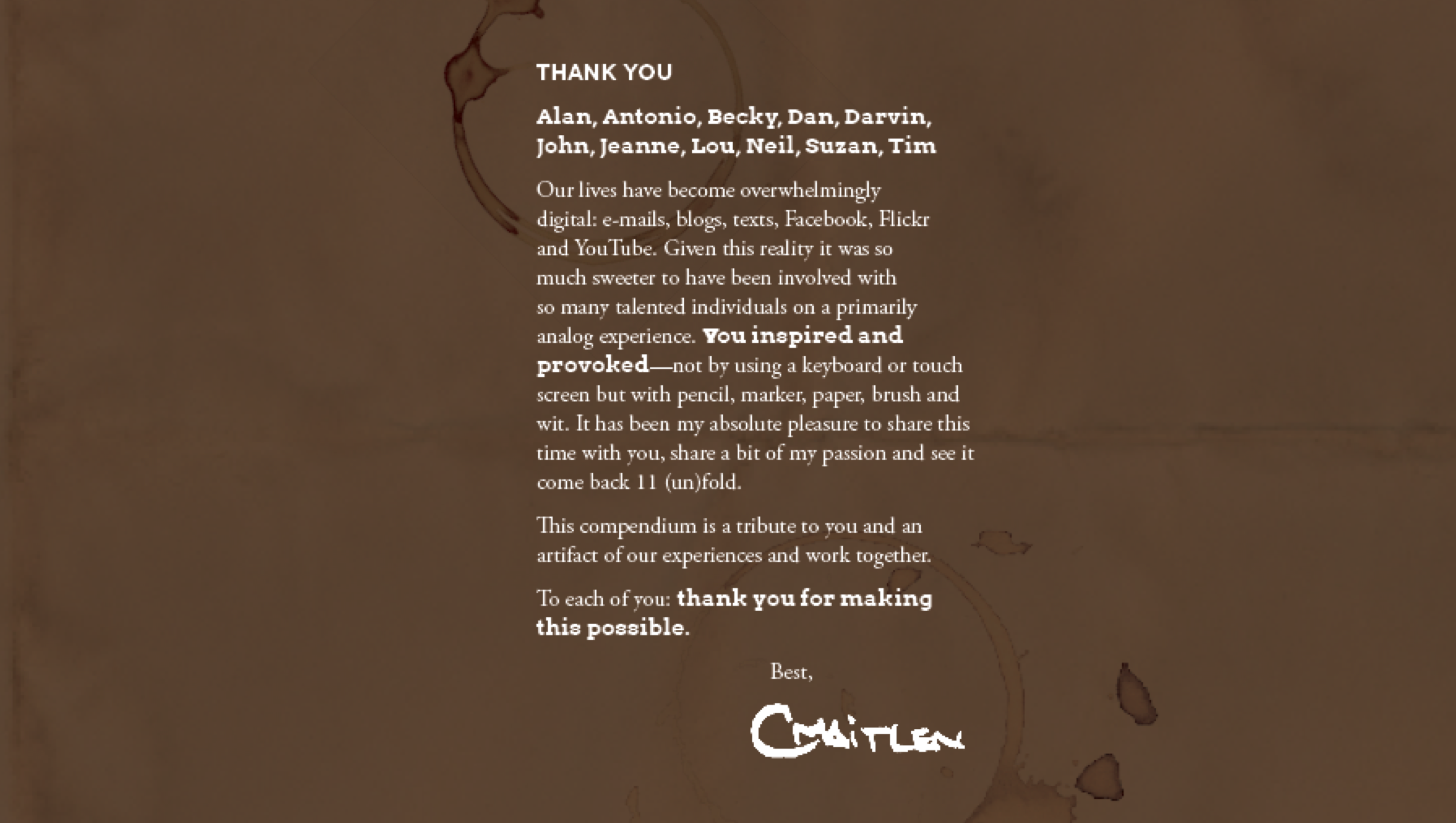 In October 2012, we had a gathering to celebrate the conclusion of the UNFOLD Journal Project.
